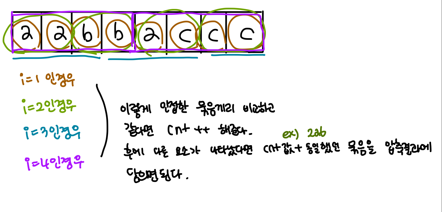 문자열 2개로 압축시 0번째+1번째, 2번째+3번째 이렇게 비교만 해주면되는건데