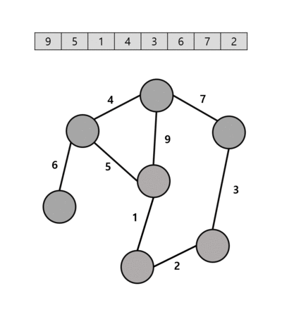 - n-1 개의 간선이 선택될 때까지 2, 3을 반복