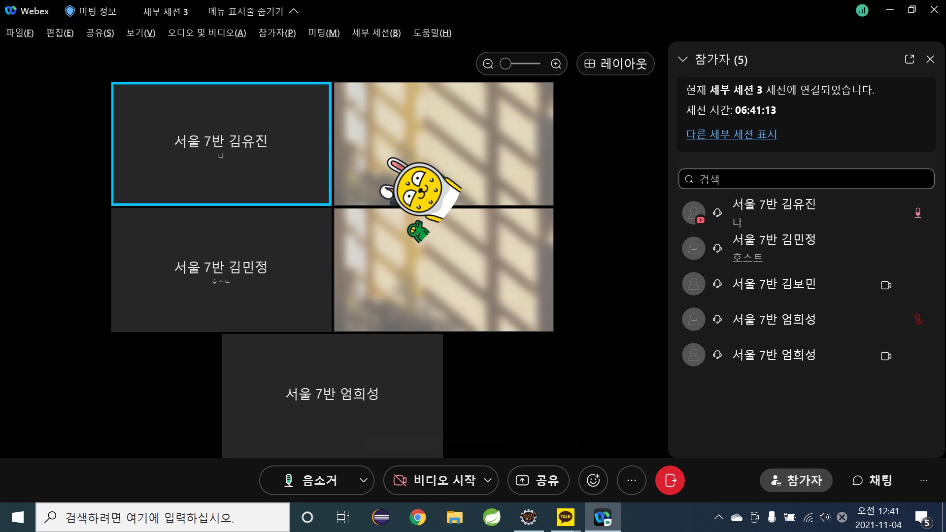 관통같은 프로젝트하면 다같이 모여서 웹엑스에 새벽까지 남아서 모르는것도 질문하고 오류도 같이 잡곤 하는데 혼자 할때보다 집중도 잘된다!