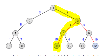 먼저, 트리의 루트로부터 제일 멀리 떨어진 ( 가중치가 제일 큰 ) 노드를 구한다.