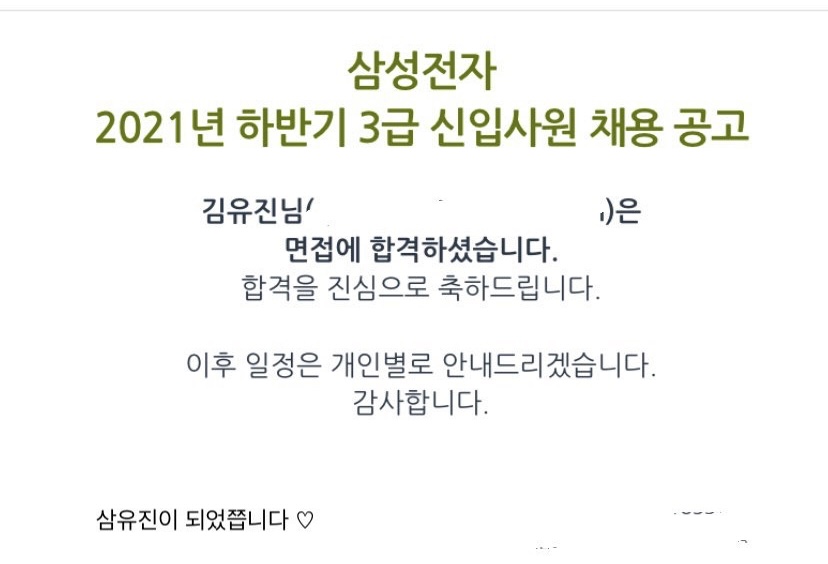 아직도 안믿기는 삼성전자 합격 ㅠㅠ